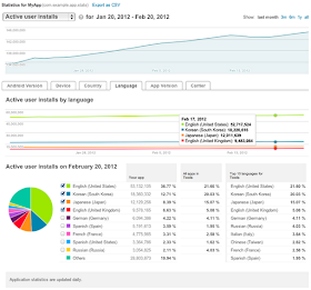If you've published an app on Android Market, you’ve probably used Application Statistics to help tune your development and marketing efforts. Application Statistics is a set of dashboards in the Developer Console that shows your app’s installation performance across key dimensions such as countries, platform versions, device models, and others.