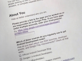 The Android Developer Relations team is passionate about making Android app development a great experience, so we're asking all of you involved in building Android apps -- from engineers, to product managers, and distribution and support folks -- to let us know what you think.